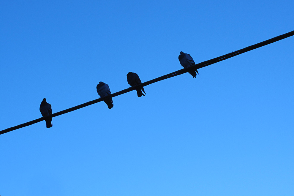 September 29, 2010 Just a couple pigeons chilling on a wire, simple - © Kurtis Stewart kurtis_stewart_telephone_wire